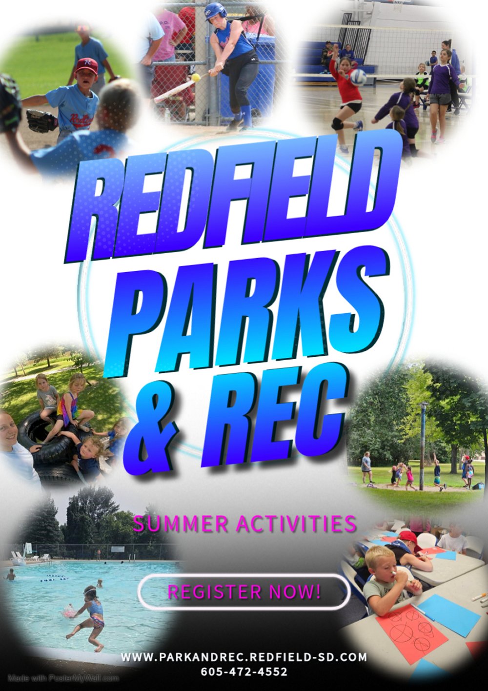 If you have questions or for more information please contact Bennett Osborn at (605)-460-1326 or parkandrec@redfield-sd.com.