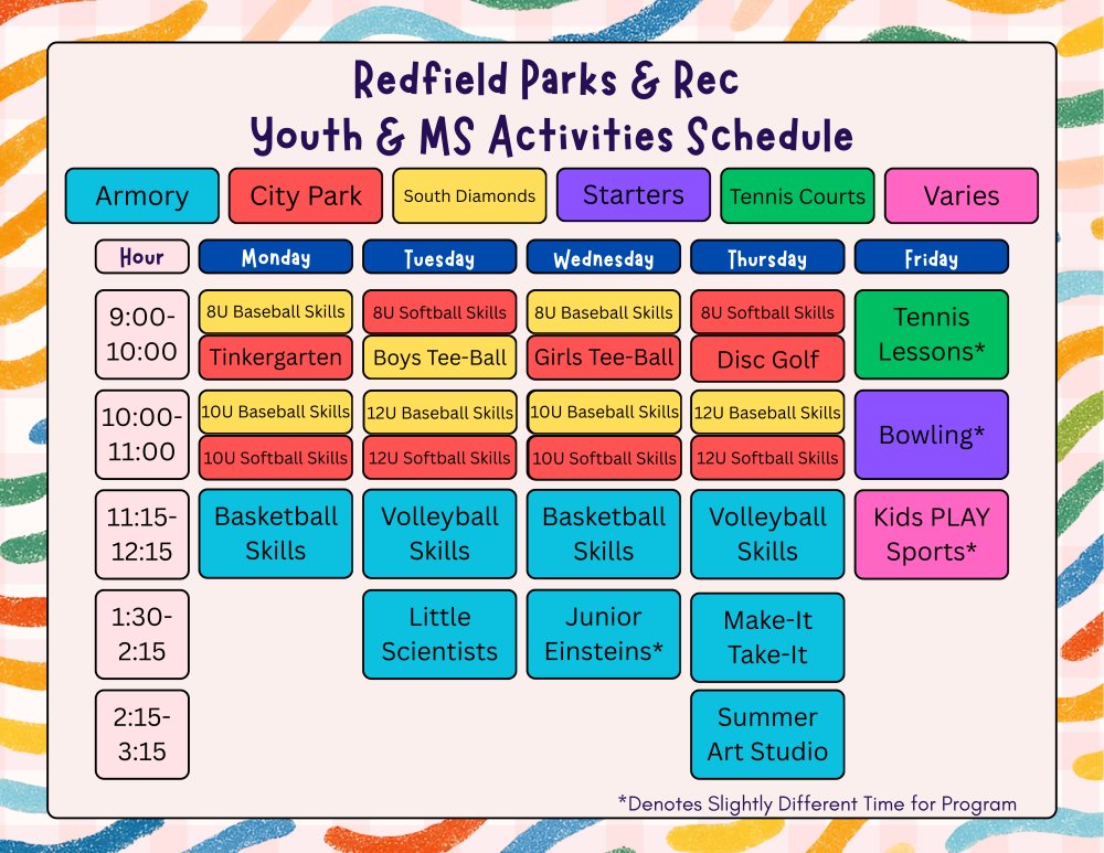 The Redfield Park and Recreation Dept offers a variety of youth and adult activities all year around.